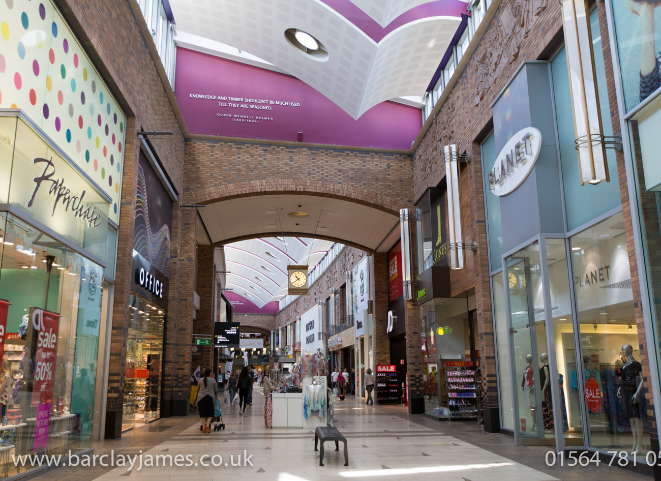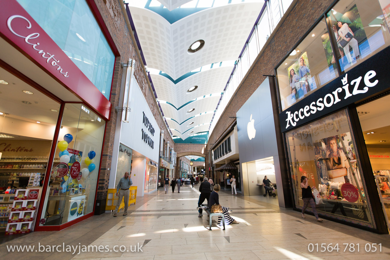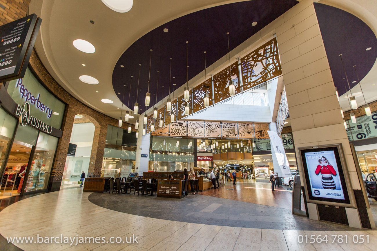 The stunning colours of Solihull’s Touchwood shopping centre brighten up the atmosphere and really bring it alive.
